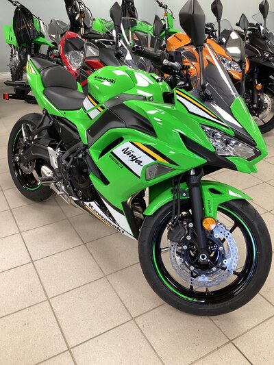 Built to embody Ninja sportbike lineage, the Ninja 650 motorcycle comes packed with a sporty 649cc engine, next-level technology and sharp styling....