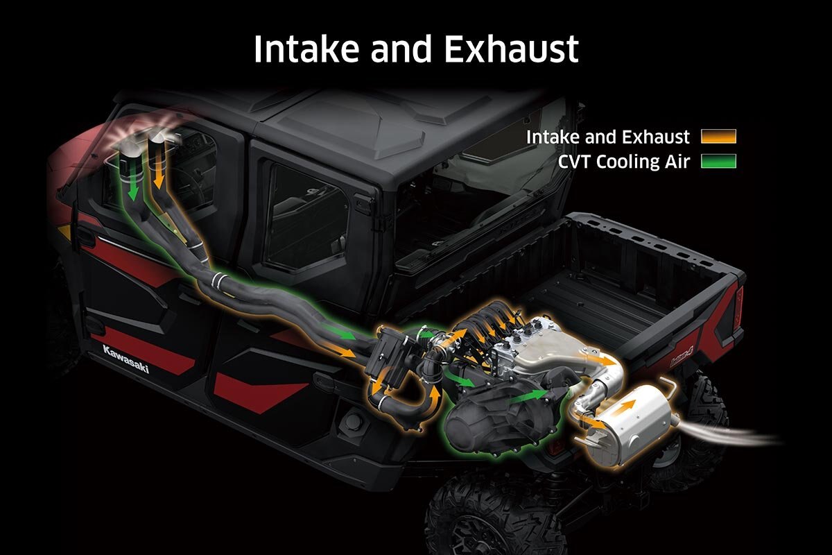 Kawasaki’s fully electronic throttle actuation system enables the ECU to control the volume of both the fuel (via fuel injectors) and the air (via throttle valves) delivered to the engine. Ideal fuel injection and throttle valve position results in smooth, natural engine response and the ideal engine output. The system also makes a significant contribution to reduced emissions.