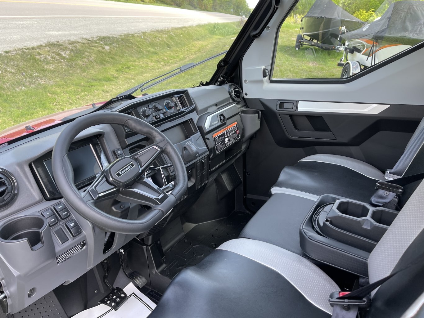 Contoured outer seating, adjustable driver’s seat and adjustable tilt steering