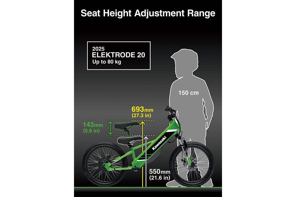 From the Kawasaki global powersports brand comes the Elektrode 20 and the Elektrode 20FS electric balance bikes, designed for ages eight and older. Built with long run-time*, top speed up to 39 km/h*, and quick acceleration, these bikes are engineered to have the most fun. No matter where you’re headed, easy adjustability and smooth handling makes everyday riding more enjoyable. With the Elektrode 20 and Elektrode 20FS, it has everything you need to make every day electric.