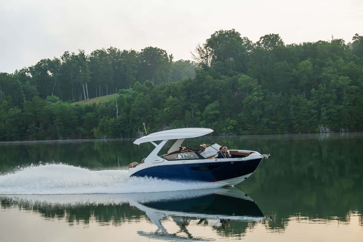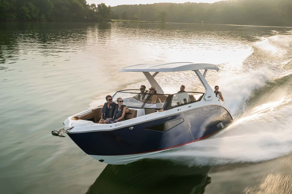 Step aboard the new 295SE and discover a world of unmatched luxury on the water. Featuring a fully plumbed head compartment, a sleek hard top for sun protection and a fully customizable stern lounge, the 295SE adapts to your needs whether you’re entertaining a crowd or seeking a serene retreat.